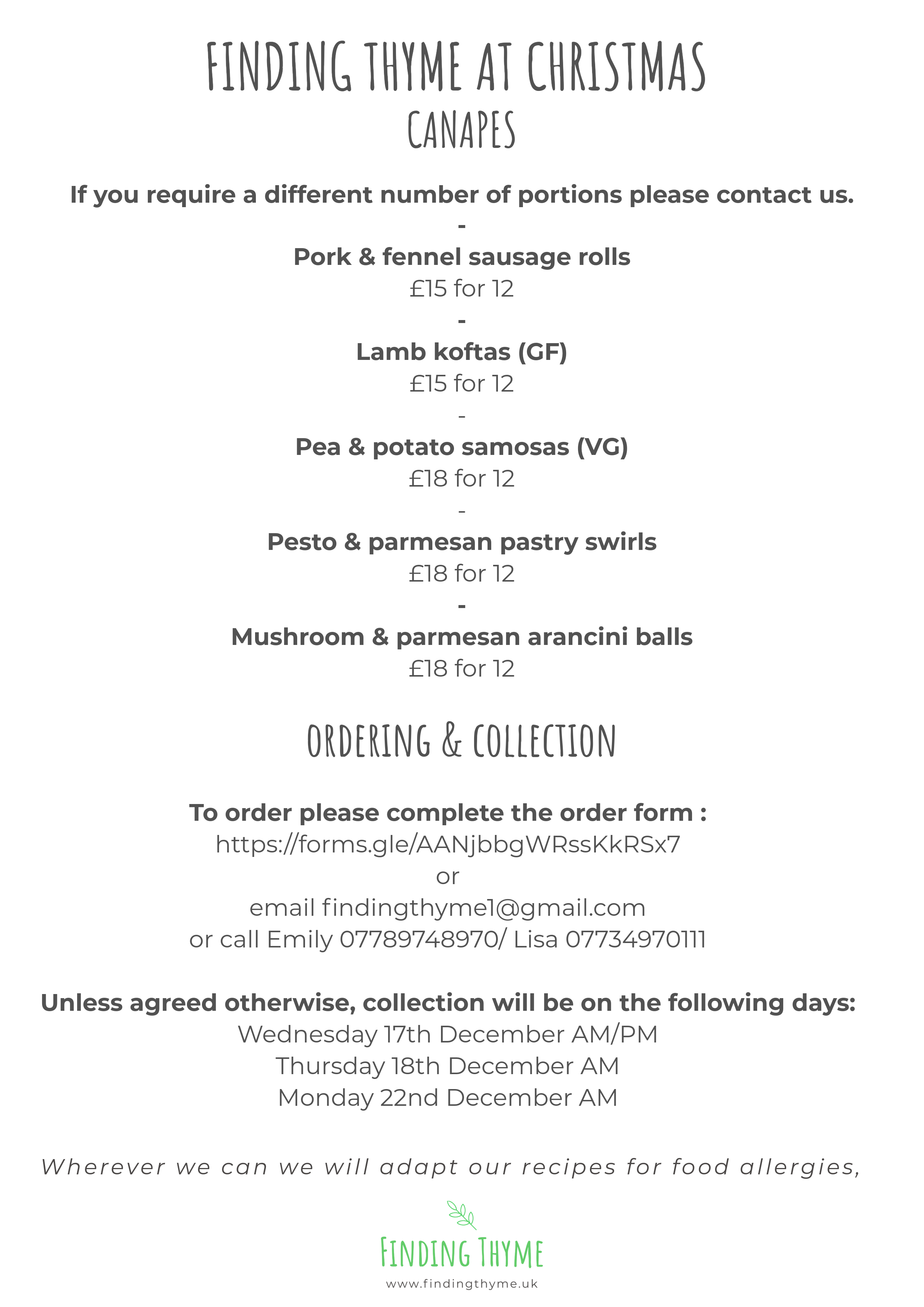 Finding Thyme at Christmas just got easier… our menu allows you to plan ahead and serve delicious, homemade food for friends and family, without having to find the time to do it yourself. Order form Download menu Order form