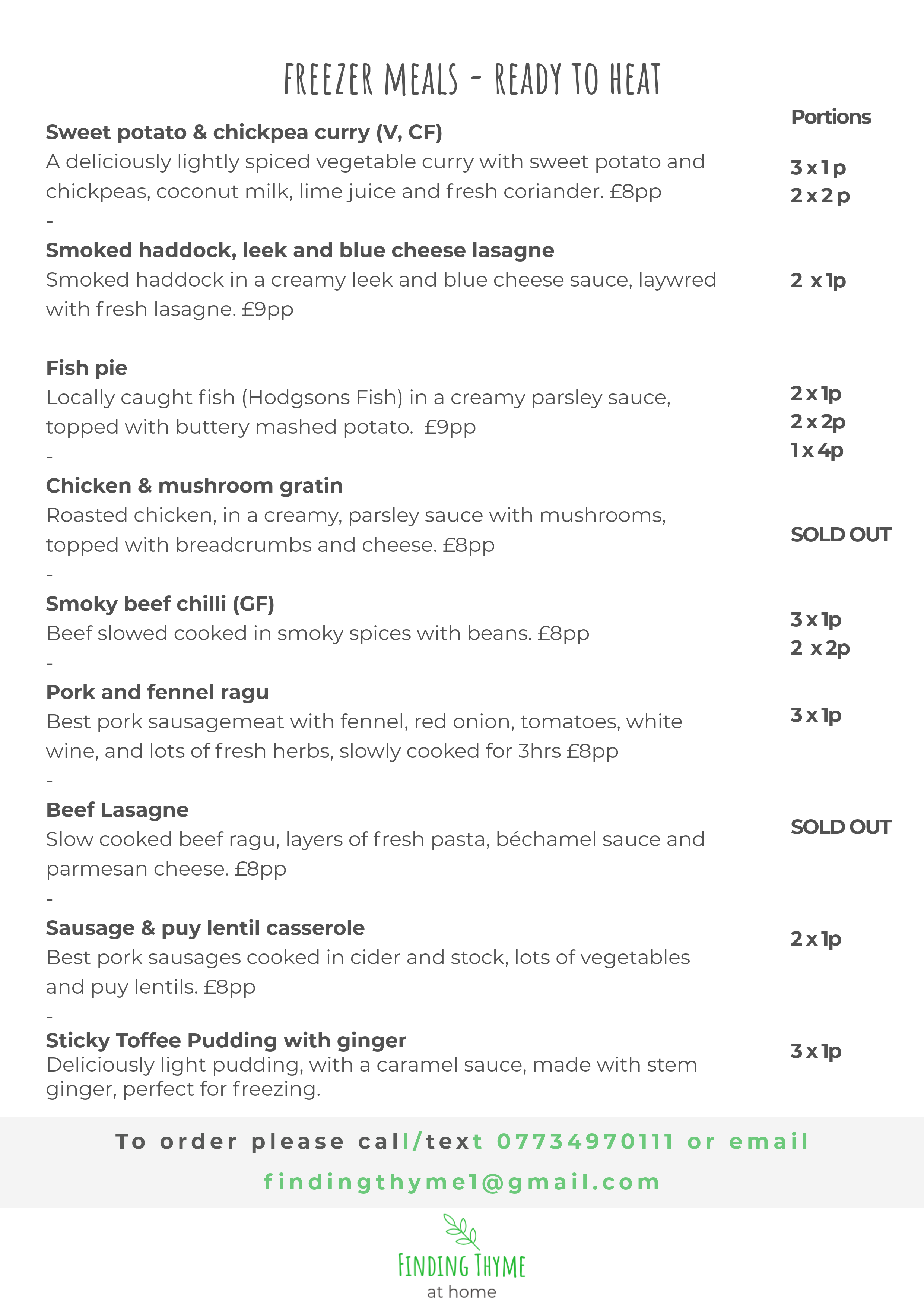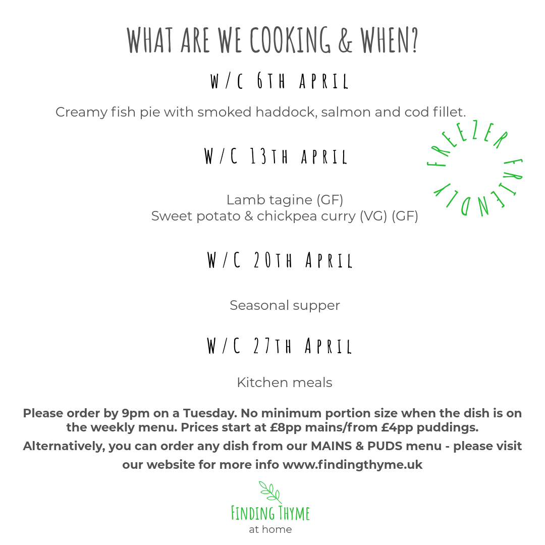 Alternatively you can order from our freezer meals opposite or look at our AT HOME menu.